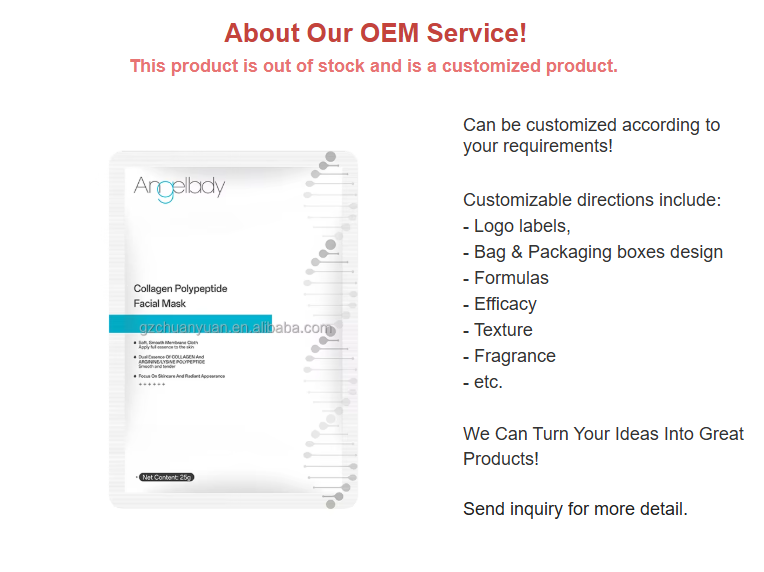 Home > Facial Mask > High Quality Facial Mask Deep Nourishment Firms the Skin Enhances Skin Elasticity Collagen Beauty Facial Mask Sheet Material