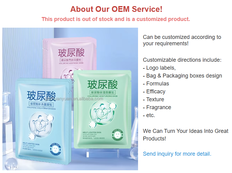OEM Formula Face Skin Care Brightening Moisturizing Hydrating Hyaluronic Acid Facial Sheet Mask for All Skin Type